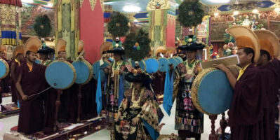 The Mindrolling Family, rinpoches, tulkus, khenpos and monks gather for Losar celebrations.