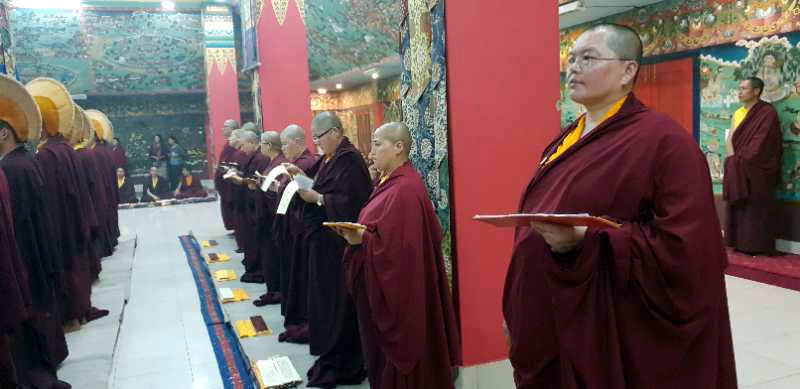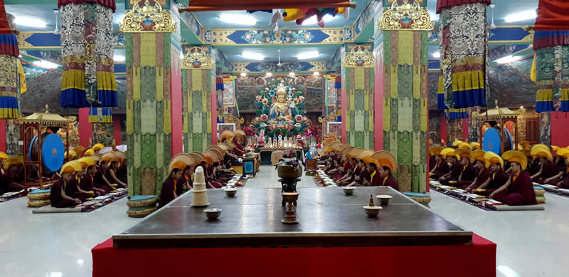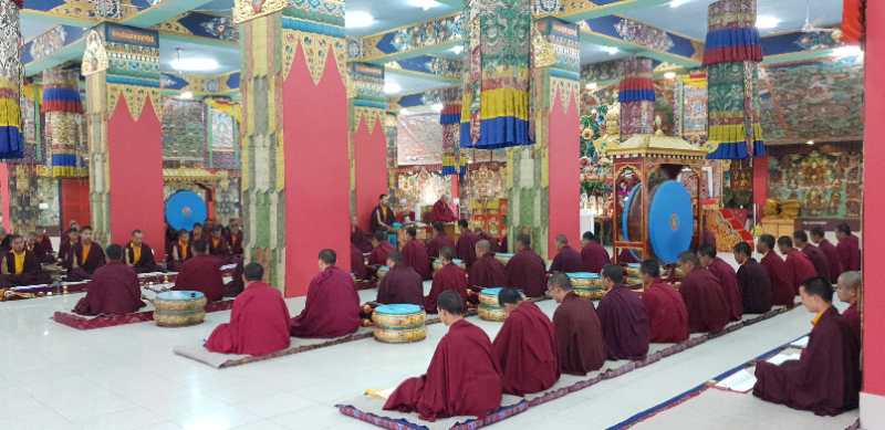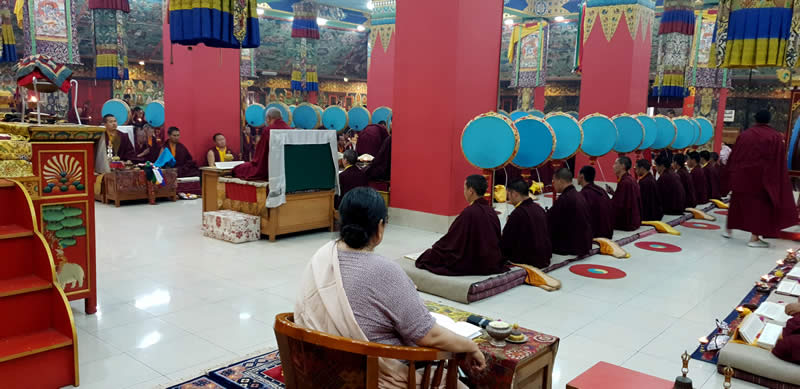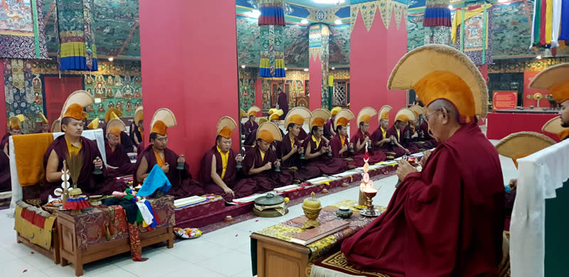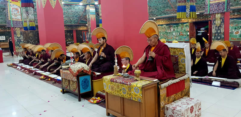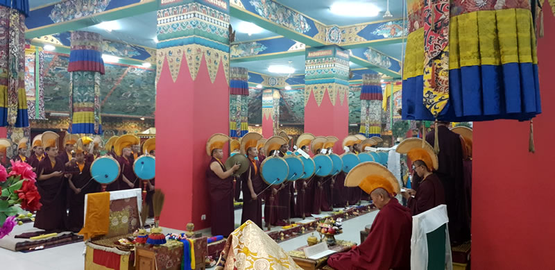 The Kagyed drubchen ceremony began on the 30th of March 2019 at the Mindrolling Monastery in India. This ten-day drubchen marks the passing of Terdag Lingpa, the great treasure master and founder of Mindrolling, and is one of the most profound practices performed annually at the Mindrolling Monstery. The Kagyed drubchen or Kagyed Mahasadhana is from one of the most profound terma practices—Kagyed Desheg Düpa revealed by Nyang Rel Nyima Ozer in the 12th century.
