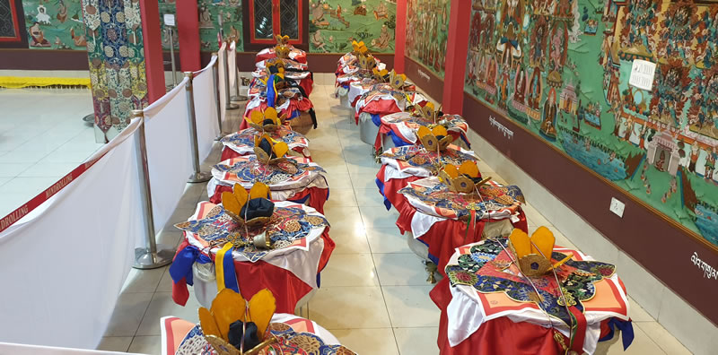 This great terma was revived by Terdag Lingpa in the 17th century and at the time of his passing into parinirvana, Terdag Lingpa instructed his students to perform the Kagyed drubchen every year instead of grieving or commemorating him in any other way. This he said would be of great benefit not just to the Sangha but to the entire world. Since his passing, the Mindrolling Sangha has performed the Kagyed drubchen every year for ten days culminating into the 2nd day of the 2nd lunar month which is the parinirvana day of Terdag Lingpa.