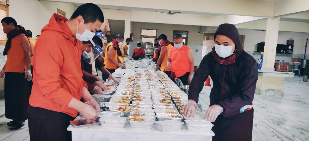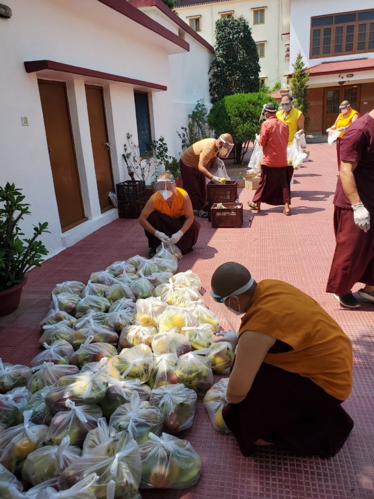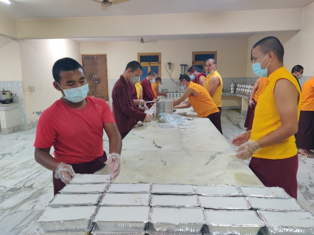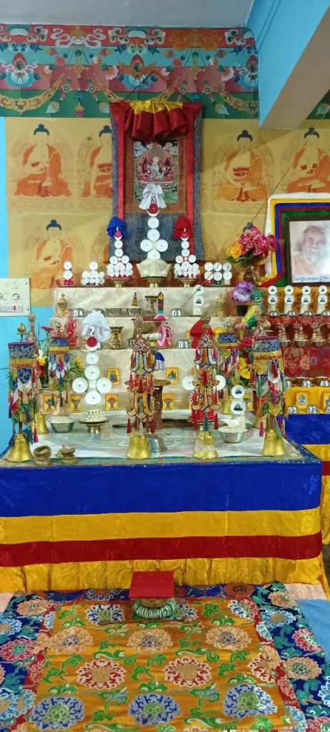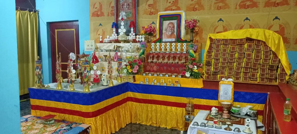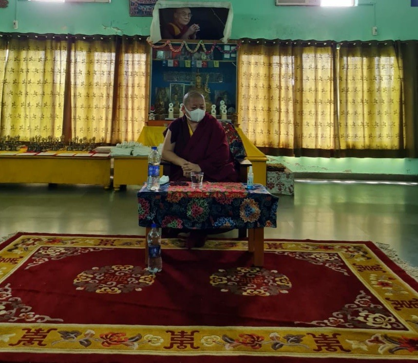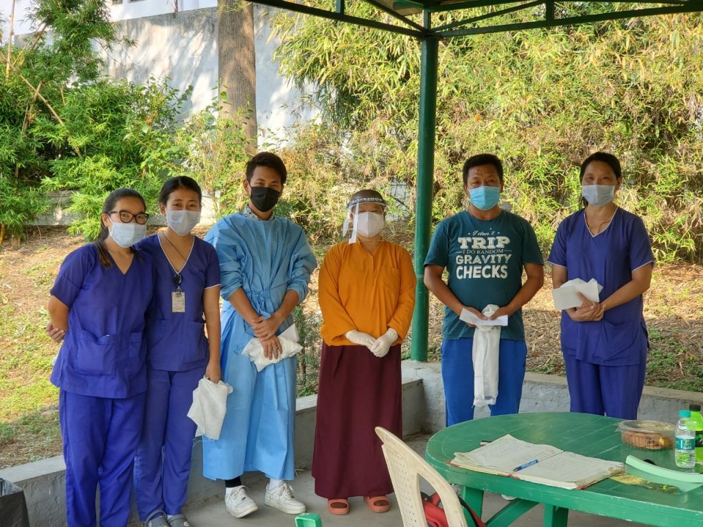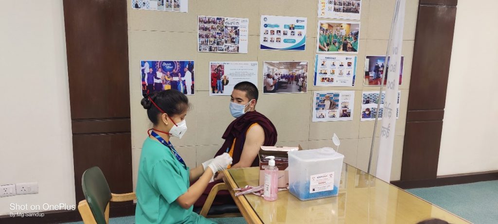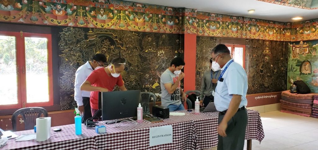 As India faced incredible challenges during the most recent wave of COVID-19, the administration team of Mindrolling Monastery worked tirelessly to protect the safety of the monks and the lay community. Facing such a crisis with shortages of so many needed supplies, the team did widespread testing, treated all those who tested positive and contained the spread of the virus using quarantines and contact tracing. After weeks of hard work, the spread of the virus within the Clement Town Tibetan Colony was contained and the safety of those in the colony has been successfully secured. Once the situation was controlled and the safety of the community had been secured, Mindrolling Monastery organized a huge vaccination effort to get the entire monastic community of Mindrolling and the Tibetan colony vaccinated. The clinic took place in the Guru Rinpoche shrine room of the stupa at Mindrolling Monastery.